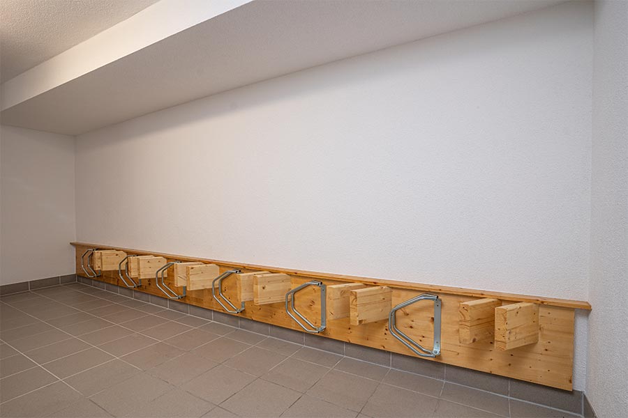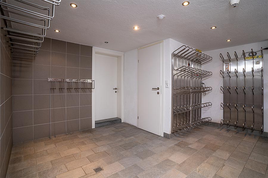 Unser Schiraum bietet ausreichend Platz für Ihre Ausrüstung. Moderne Schuhtrockner sorgen dafür, dass Ihre Schuhe über Nacht trocken und angenehm warm werden.