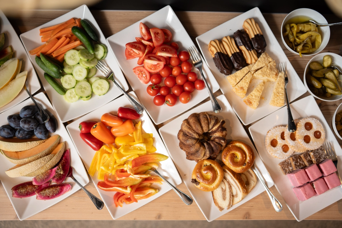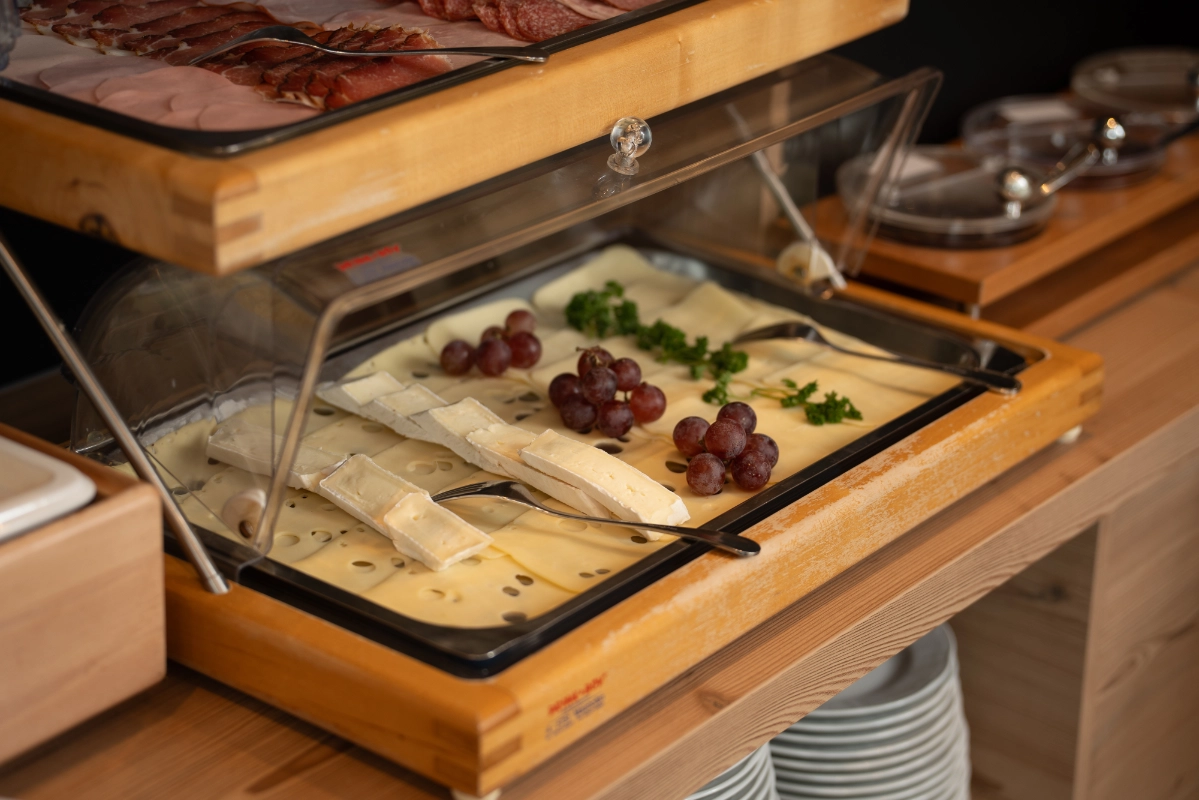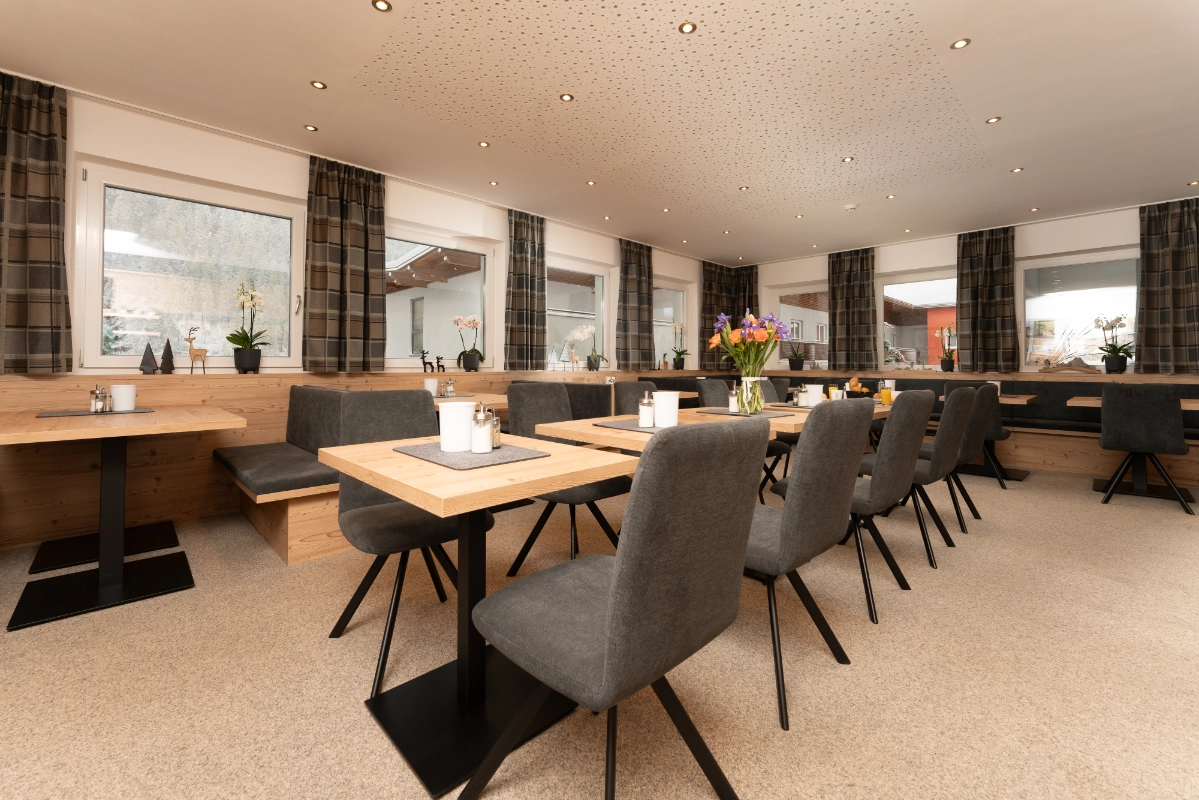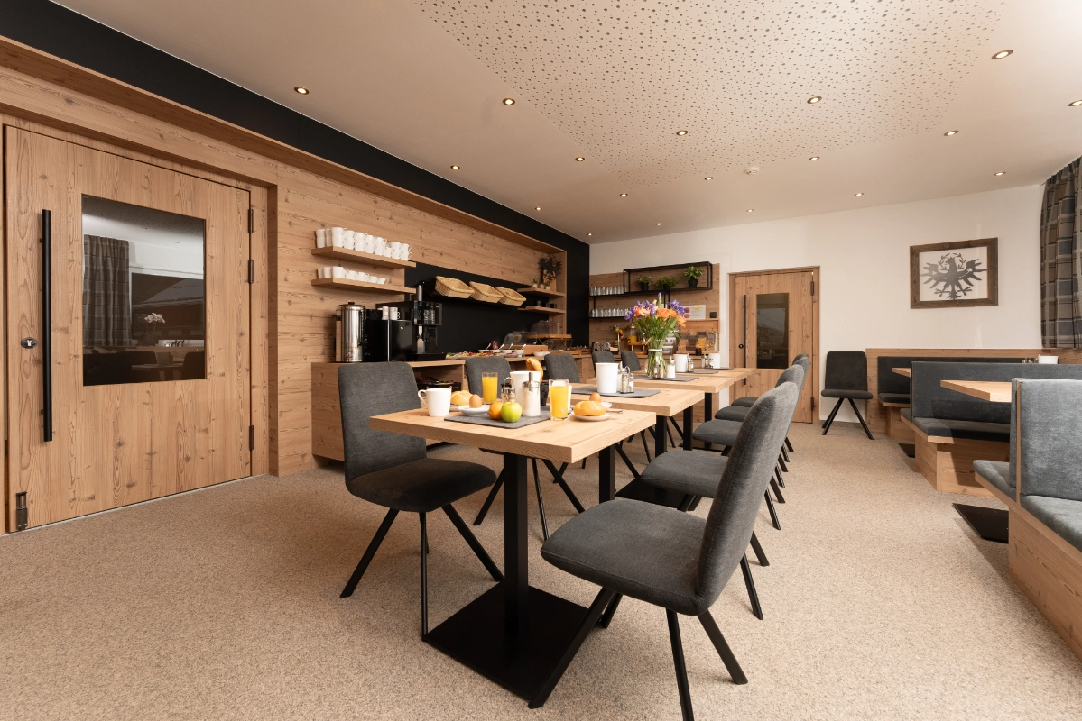 Starten Sie gestärkt in den Tag in unserem hellen und gemütlich eingerichteten Frühstücksraum. Freuen Sie sich auf eine große Auswahl an frischen und regionalen Produkten – von knusprigem Brot über hausgemachte Marmeladen bis hin zu Obst, Säften und warmen Leckereien. In entspannter Atmosphäre können Sie Ihren Morgen genießen, sich auf den Tag einstimmen und den Urlaub von Anfang an in vollen Zügen erleben.